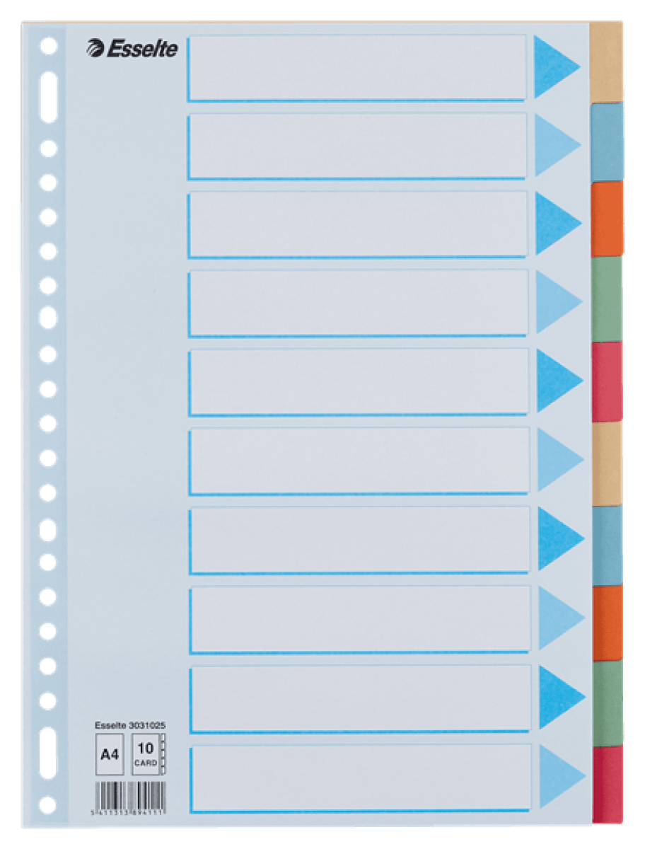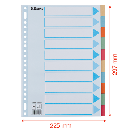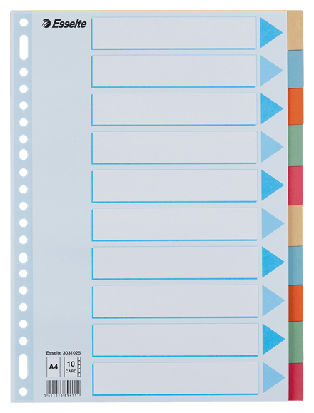 tabbladen A4 gekleurd karton 275 gr 10 tabs esselt