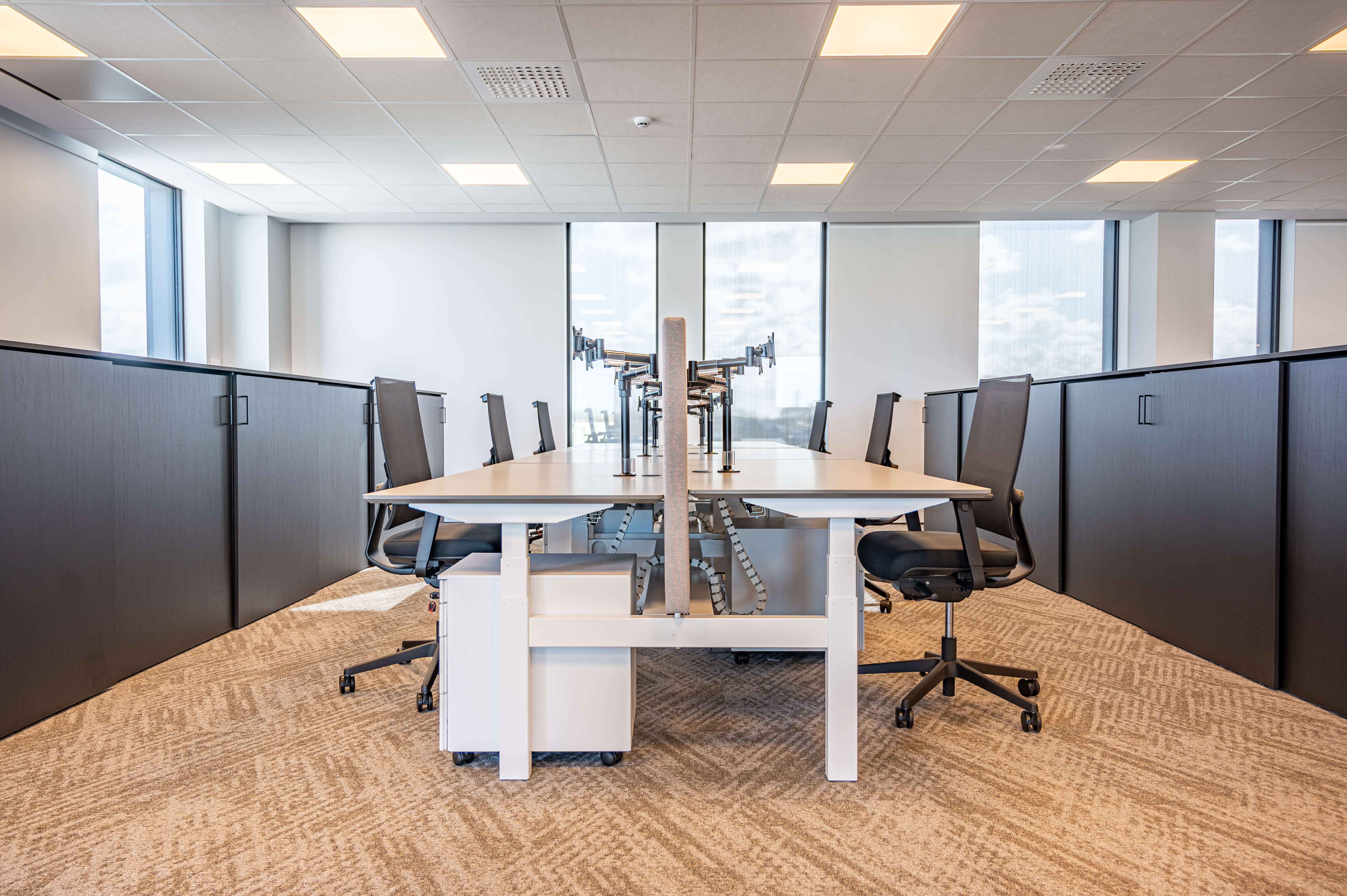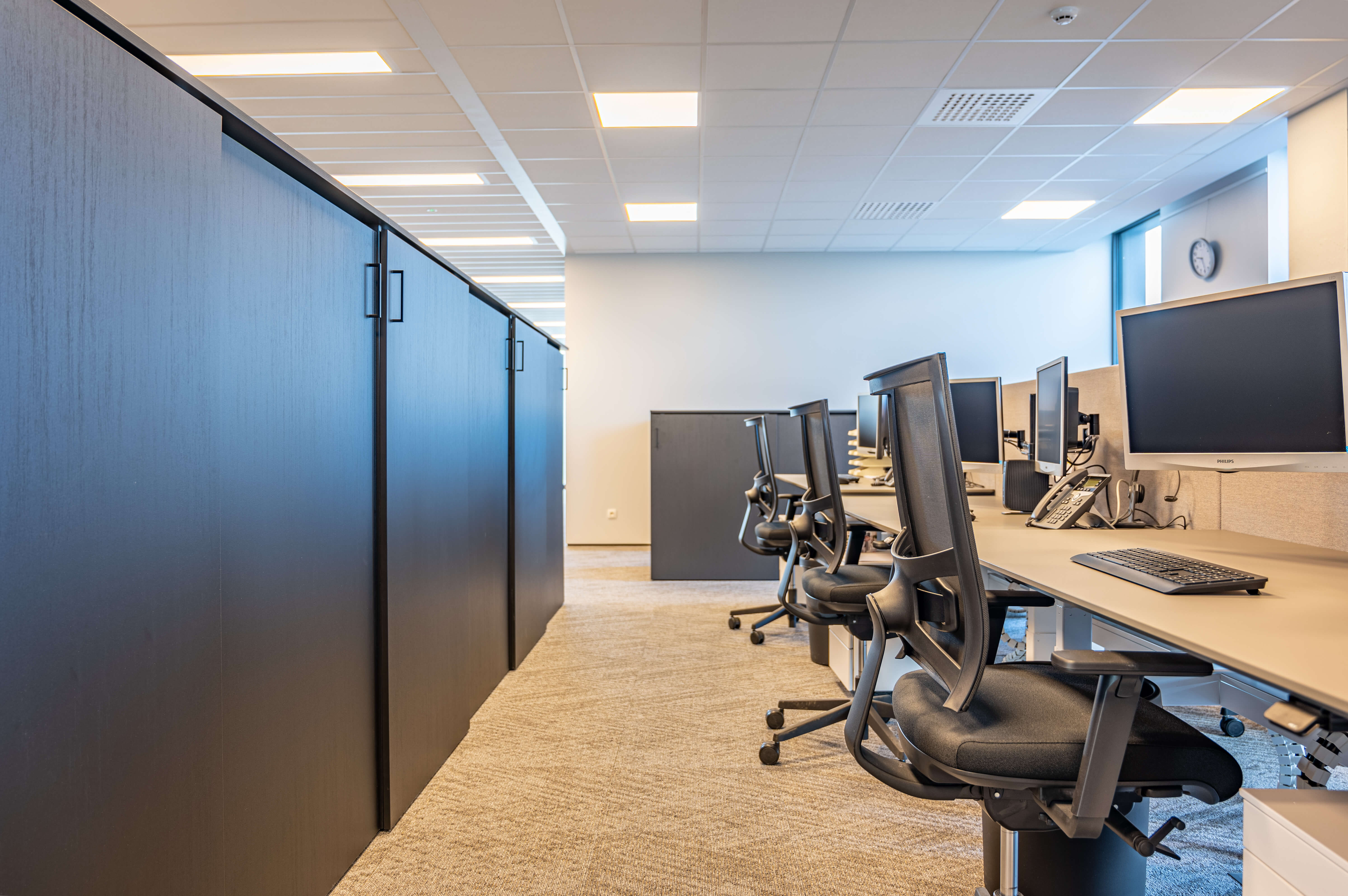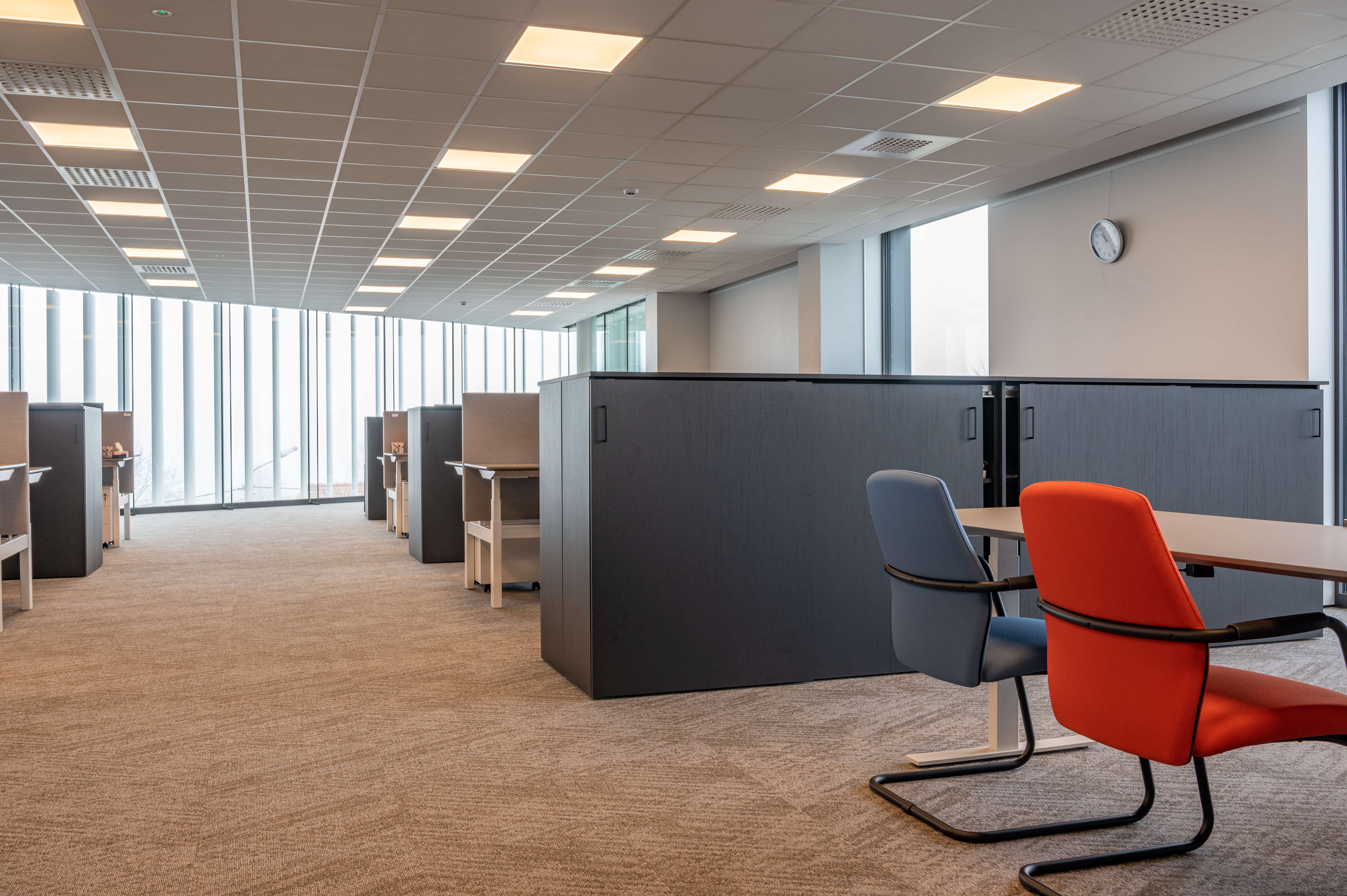 Voor Lecot, de grootste nationale speler in ijzerwaren, bevestigingen, bouwbeslag, gereedschappen en PBM’s, realiseerden we de volledige inrichting van hun nieuwe hoofdkantoor in Heule. Ergonomie stond centraal: van hoogwaardige bureaustoelen tot perfect uitgebalanceerde werkplekken, aangepast aan intensief dagelijks gebruik.