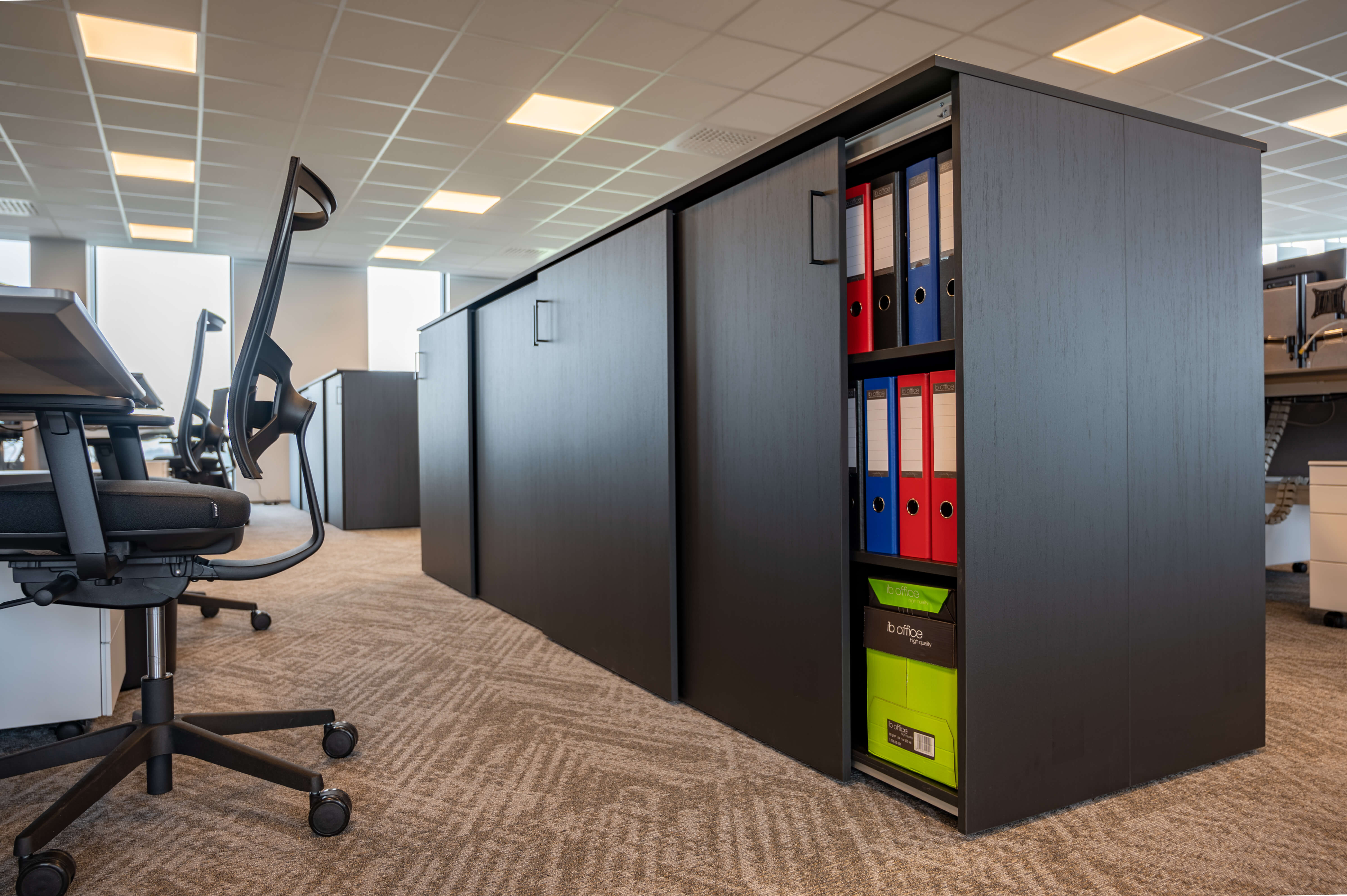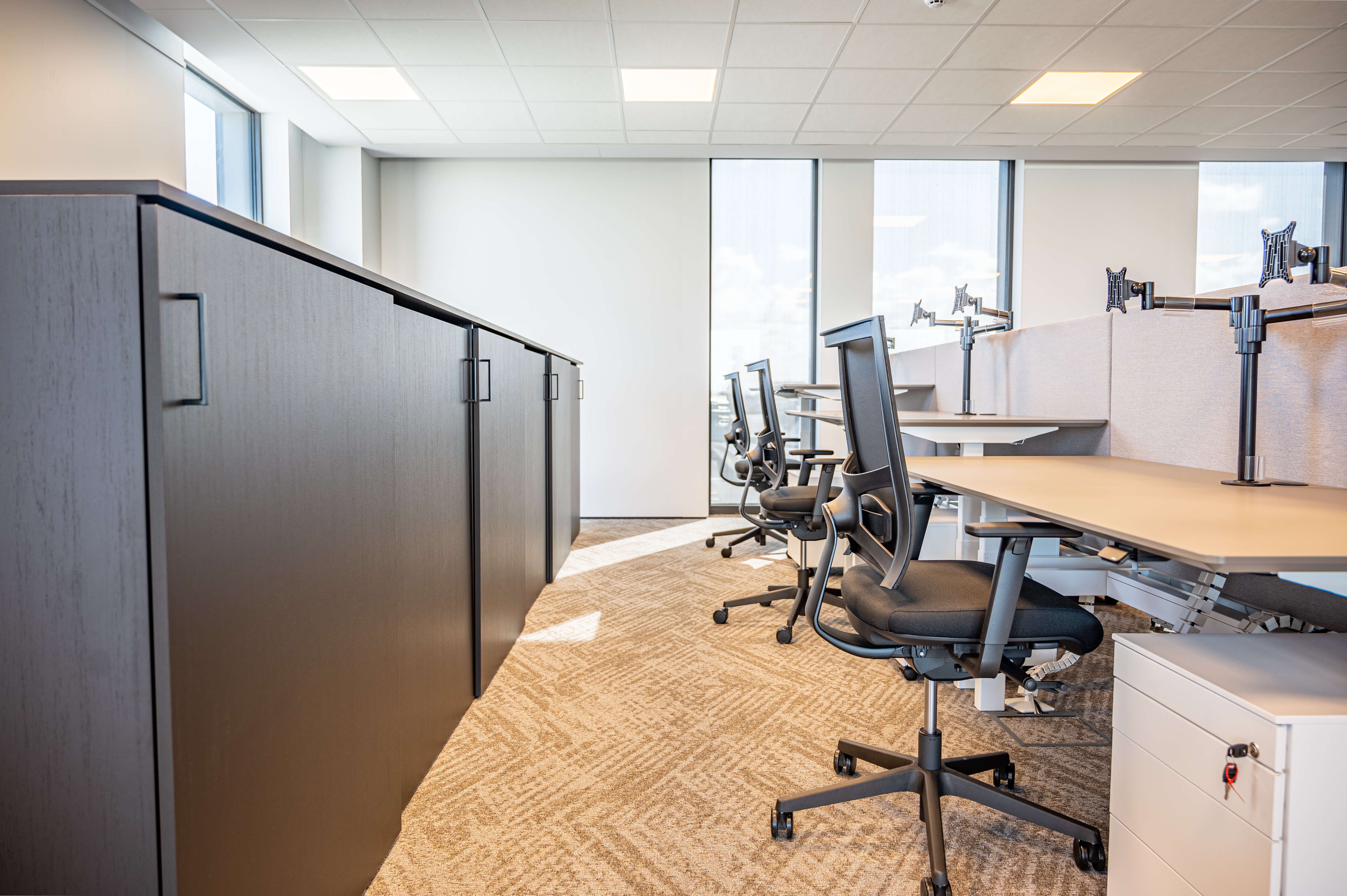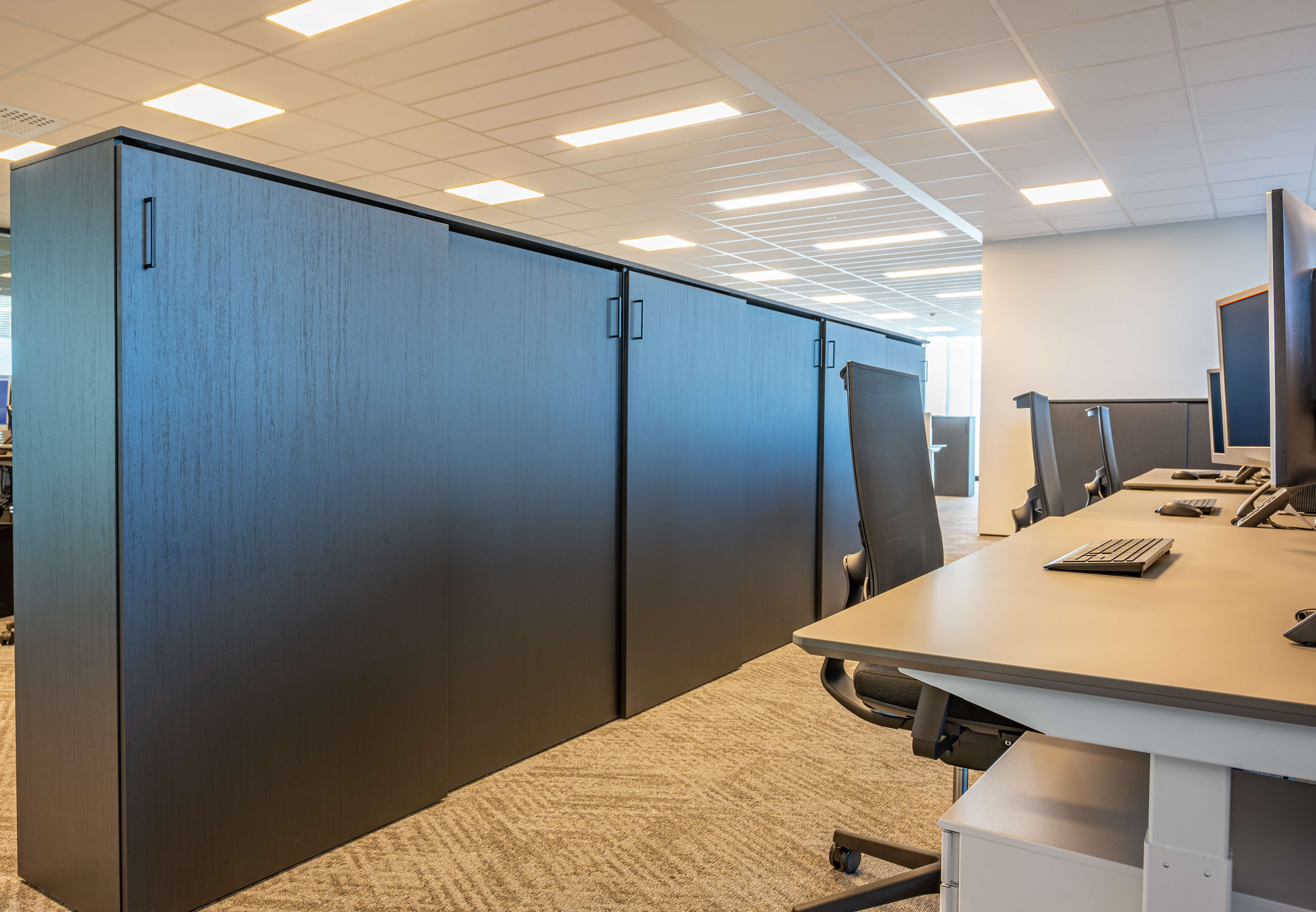 Voor Lecot, de grootste nationale speler in ijzerwaren, bevestigingen, bouwbeslag, gereedschappen en PBM’s, realiseerden we de volledige inrichting van hun nieuwe hoofdkantoor in Heule. Ergonomie stond centraal: van hoogwaardige bureaustoelen tot perfect uitgebalanceerde werkplekken, aangepast aan intensief dagelijks gebruik.
