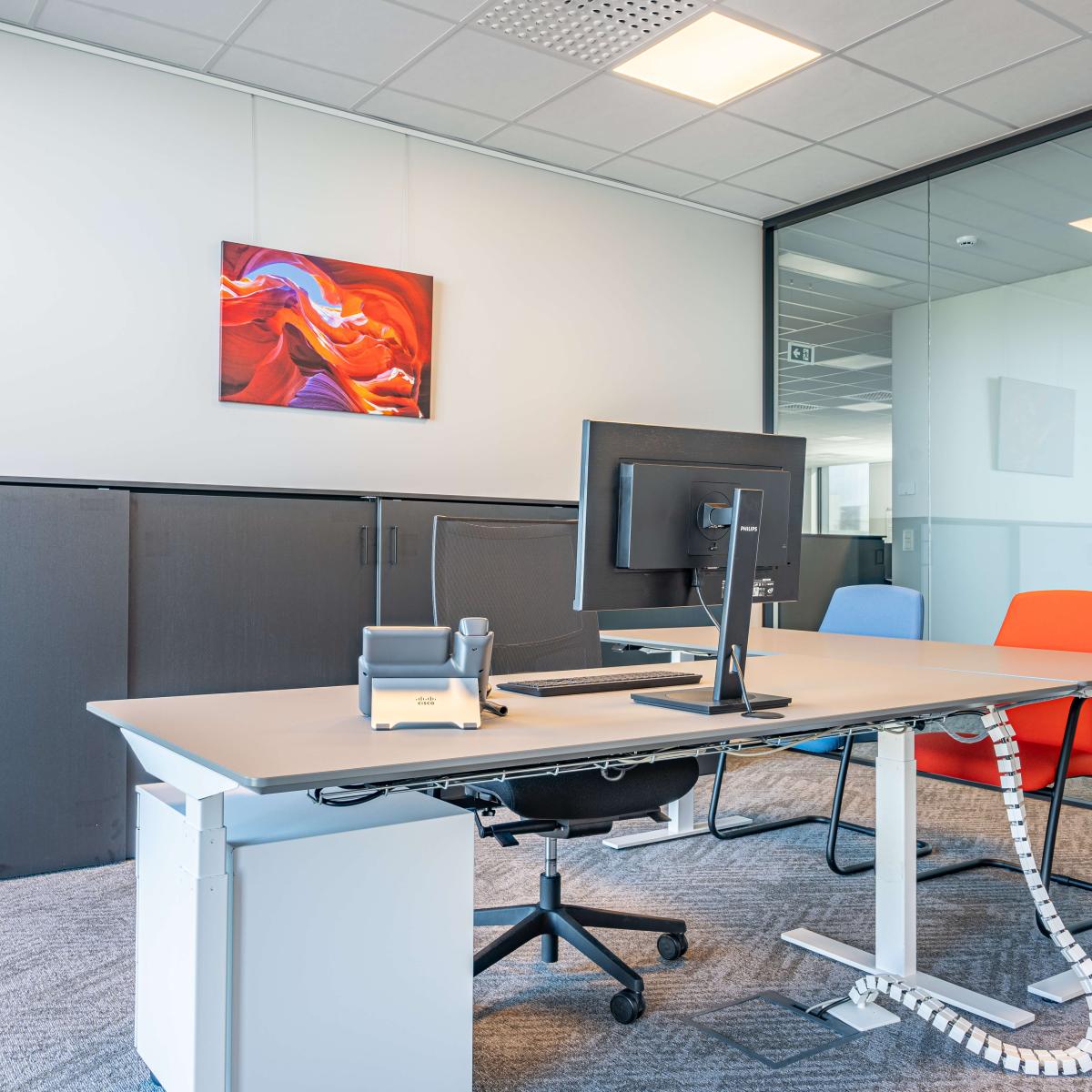 Daarnaast gaven we ter plaatse opleidingen rond ergonomisch zitten en correct werken aan een bureau, zodat elke medewerker het maximale comfort uit de nieuwe werkplekken haalt.
